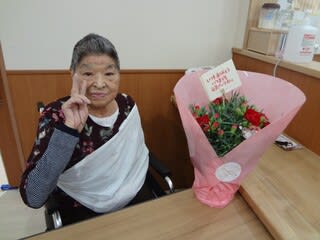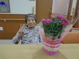 入居者の皆さんの所にも、ご家族からのお花が届きました