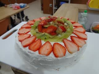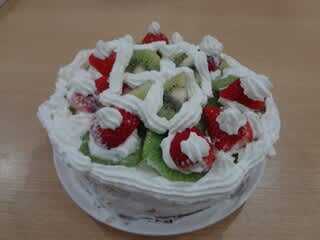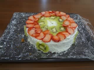 いちごとキウイを使い、美味しそうなケーキが出来上がりました