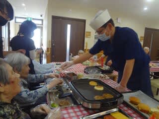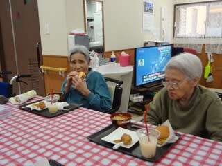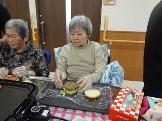 本年度入社の若いスタッフが、ハンバーガーを入居者に食べて頂きたいと思い立ち、