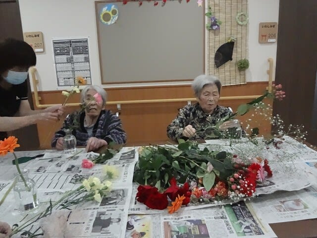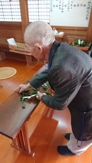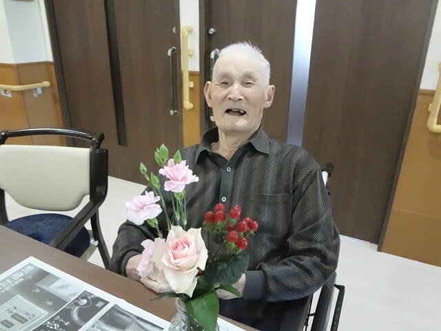 生け花をしてもらい、陽当たりのいい場所に移動して
