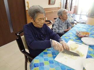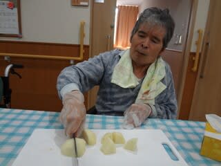 メニューはカレーライスです入居者様には具材を切ってもらいました