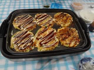 お好み焼きが焼き上がり、ビールと一緒に乾杯しました