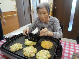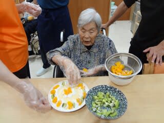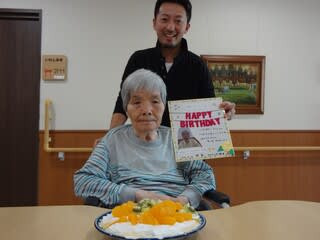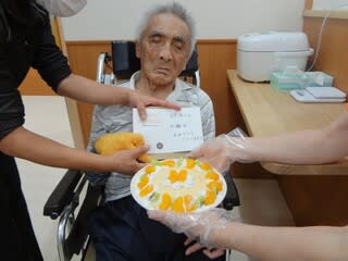 いわしみずでは誕生会を開き、ケーキも入居者様に作って頂きました。
