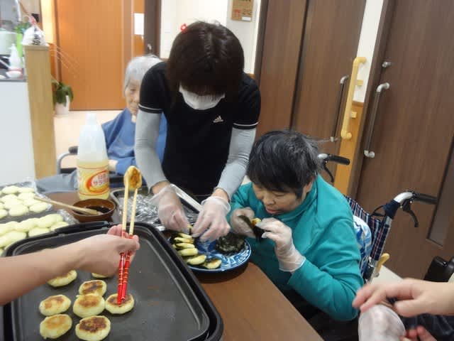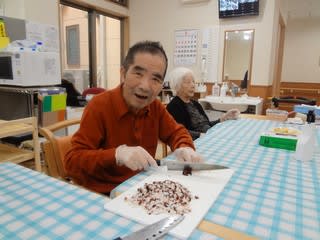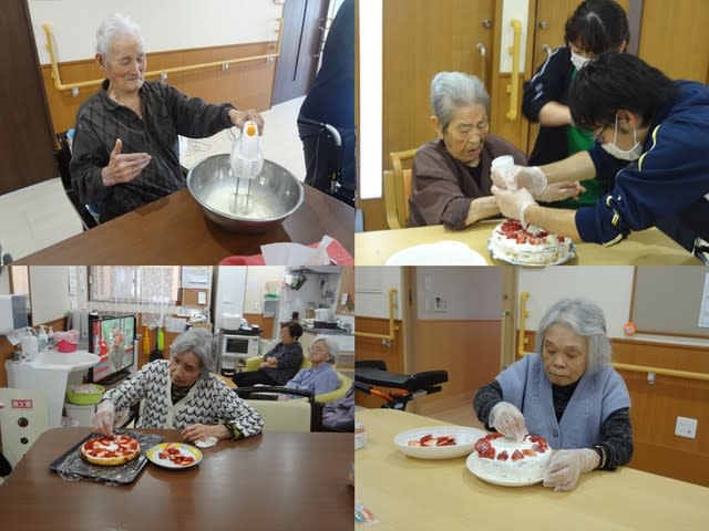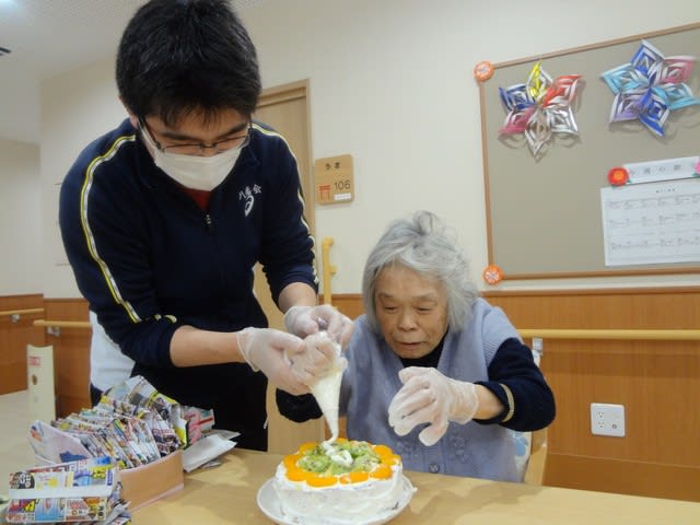 入居者と職員で誕生日ケーキを作りお祝いしました。