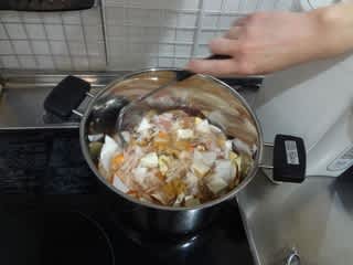 切った野菜を鍋に入れ、最後に火が通ったら味噌をとき入れて完成