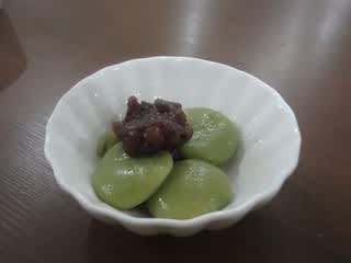 ③皿に盛り付け、餡子をのせ完成