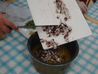 まず、タコ飯の材料のタコを切ってもらいました。
