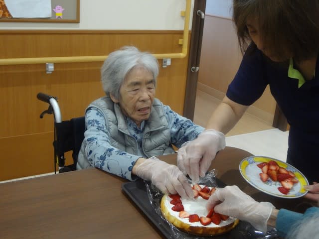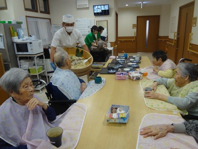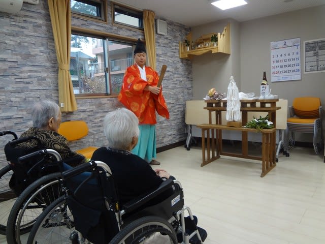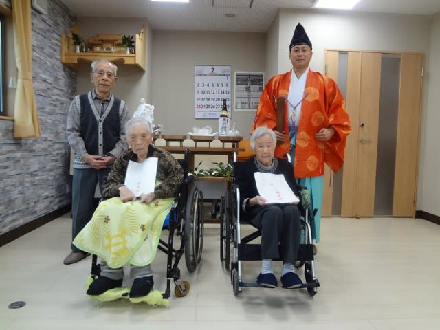 お祓いの後は、入居者の皆さんと一緒にお祝いをしました。