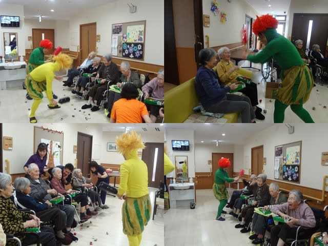 入居者の皆さん、おもいっきり手作りの豆を投げつけます