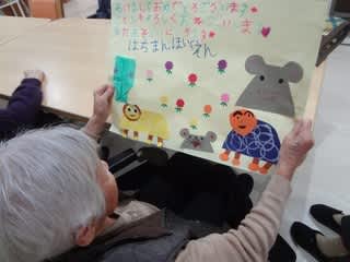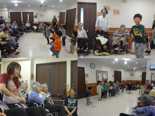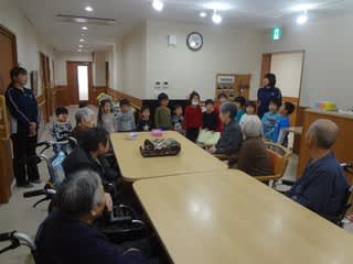 八幡保育園の園児達が慰問で来てくれました。 可愛い踊りや歌を披露してくれました。 みなさん大変喜びです!