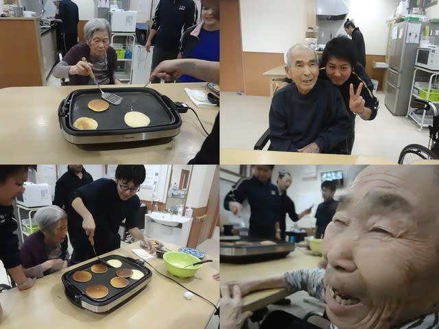 どら焼きは、入居者さんに焼いてもらったり入居者さんのご指導の下、男性職員も焼いてみましたが
