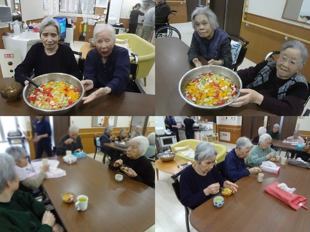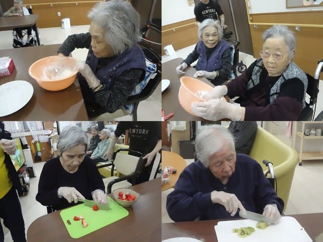 果物を切ったり、白玉粉をこねて団子に丸めたり、すべて入居者さんにして頂きました。
