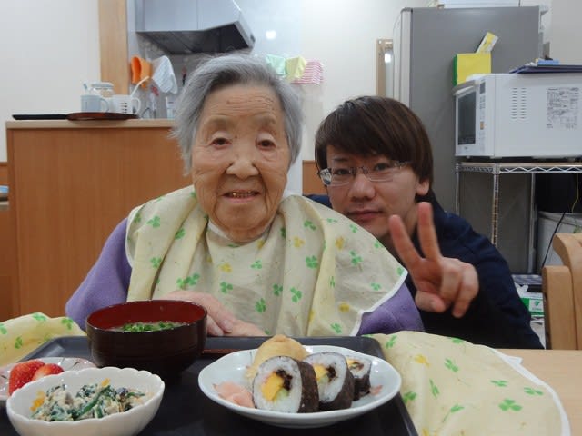 昼食は、入居者さんのリクエストで『恵方巻き』でした。