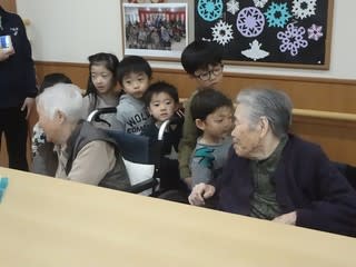子供達の突然の訪問に皆さん大喜びです! みんなと握手されました。