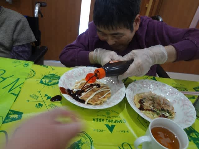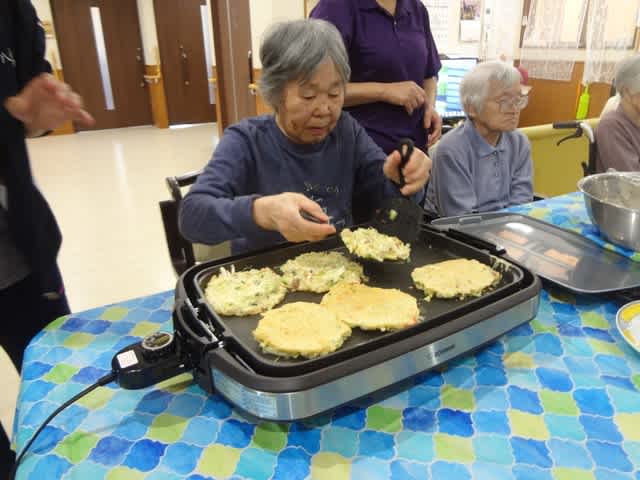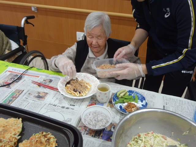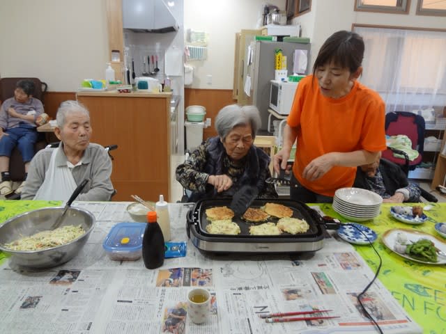 今日は、入居者さんからのリクエストでお好み焼きパーティーを開きました