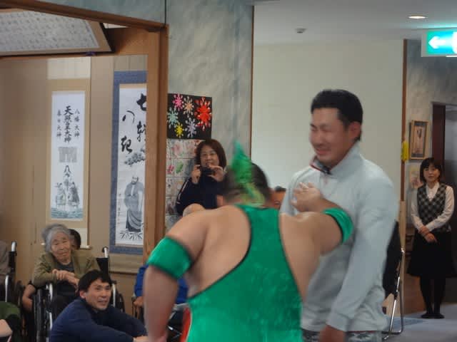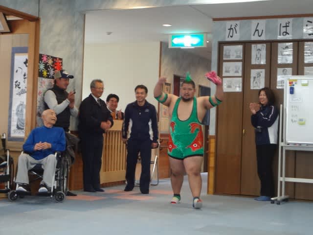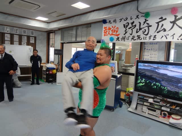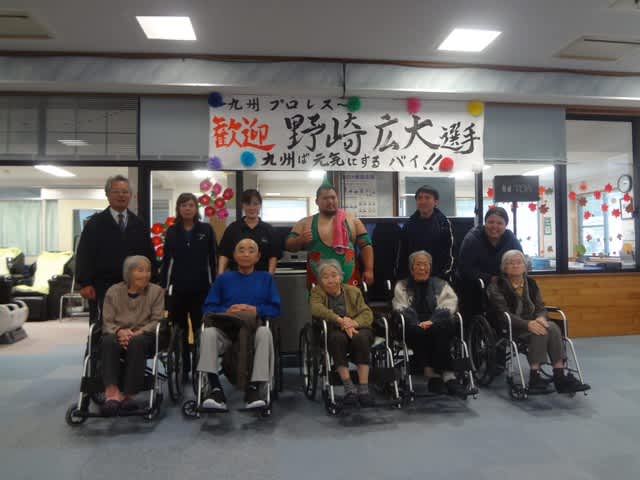 今日は、デイサービス宮に九州プロレスラーの野崎広大選手が来られるということで、会いに行ってきました