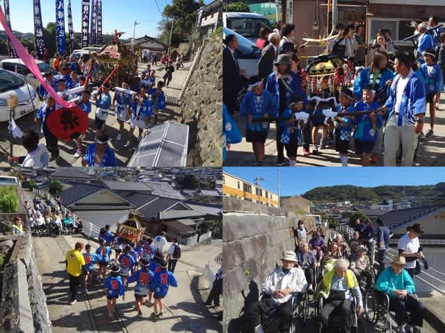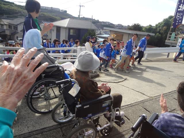 八幡神社大祭2日目、お神輿が神社に帰ってきました。 御上り見学を手をふって楽しまれました(^O^)