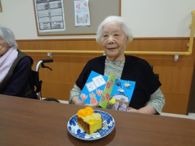スタッフからのプレゼントと手作りのケーキに皆さん喜ばれていました。