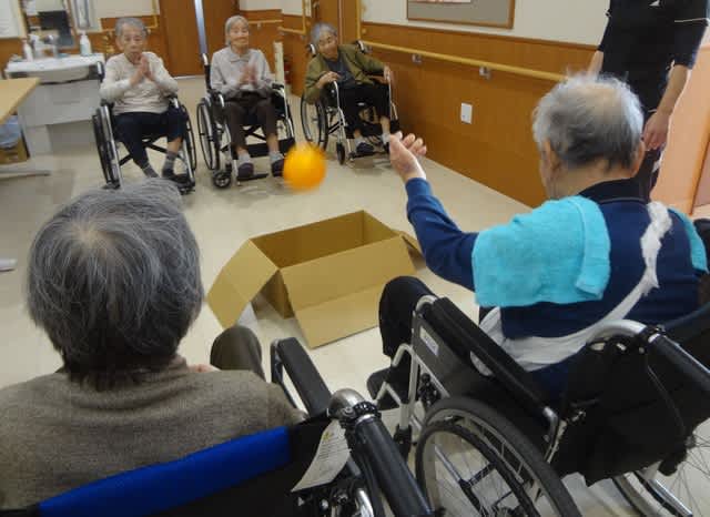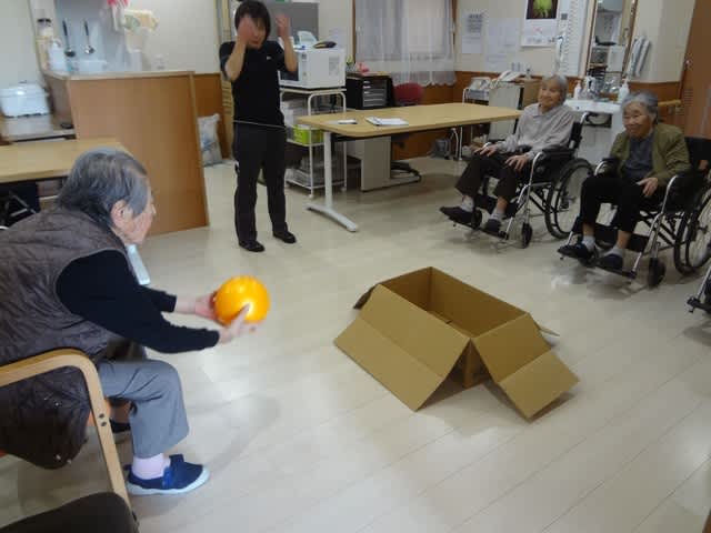 つるがおか ユニットでは、レクリェーション(ボール入れゲーム)が行われていました。 皆さん笑顔で楽しく参加されていました(^o^)