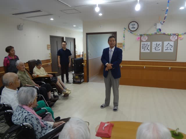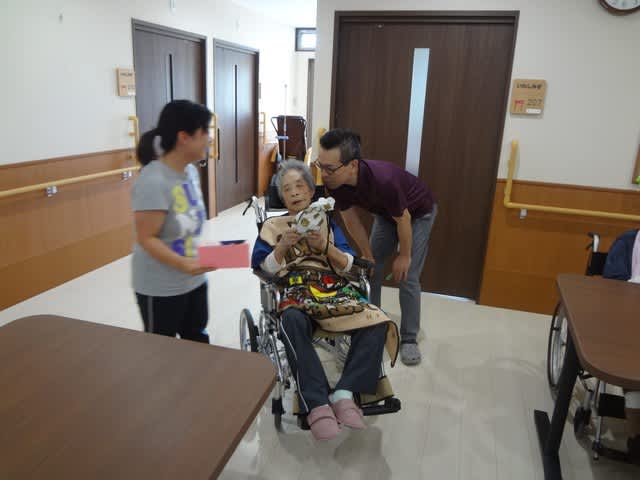 まずは理事長、施設長からの挨拶から始まり、お祝いの品を利用者様に渡されました。