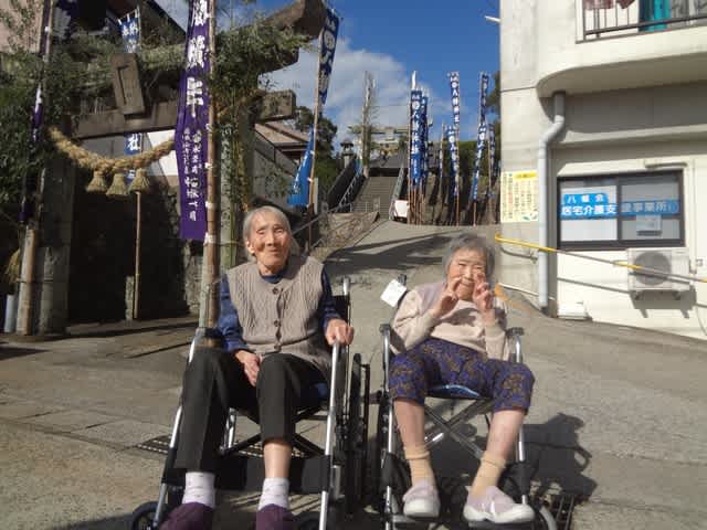 大祭前の神社を見に行きたいと入居者さんが希望され見に行きました。 地元の入居者さんは「昔を思い出す」と喜ばれていました。