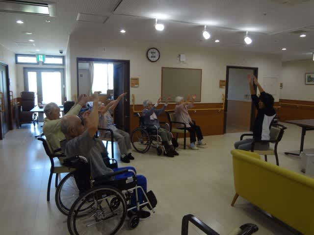 いわしみずユニットでは集団体操を行われてました。皆さん手足をよく伸ばされます!