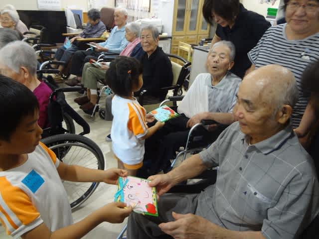 園児からの手作りプレゼントを手渡しで受け取られ大変喜ばれました!