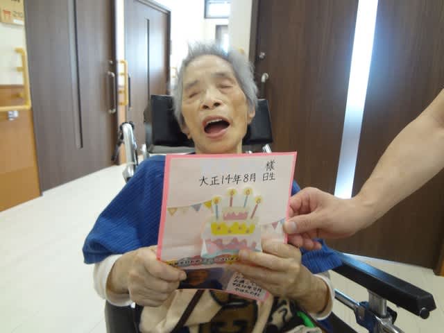 いわしみず、ユニットでは誕生会を開催しました。 とても喜ばれプレゼントで貰った靴下をさっそく履かれました(^o^)