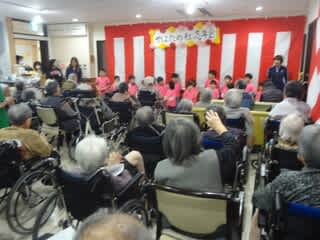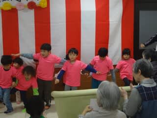 まず園児によるお遊戯が行われて入居者の方も喜ばれていました。
