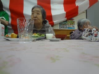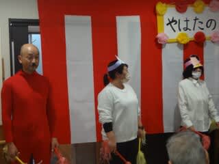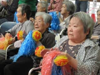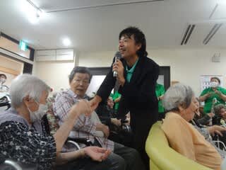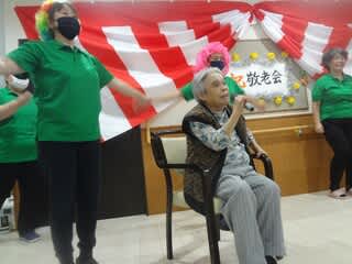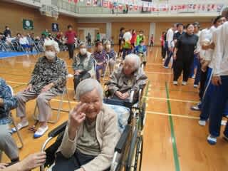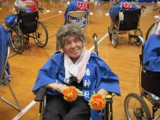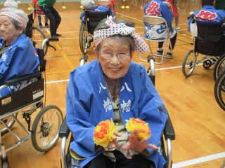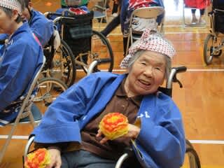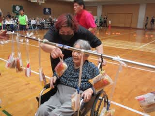 デイサービス宮の利用者と一緒に踊りを披露 パン取り競争もありました