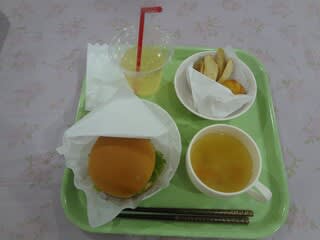 各々、バンズパンにレタスやハンバーグを挟んでいただきました。