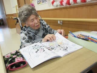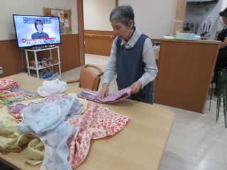 洗濯物畳みや塗り絵などされる方もいれば、ゆっくりのんびり過ごされる方いろんな方がいらしゃいます